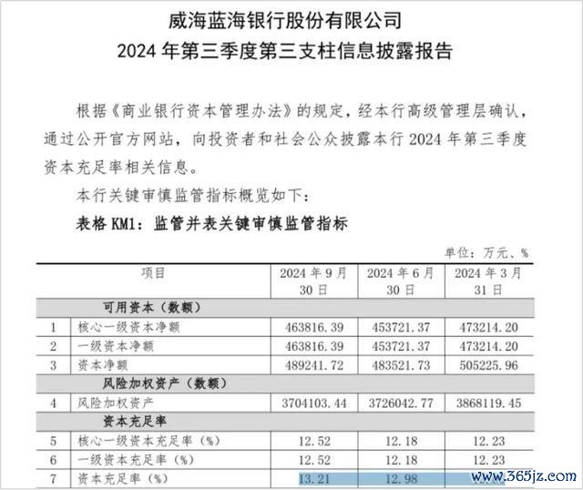 如此大的分红比例,是否合理?从资本充足率指标来看,2024年三季度蓝海银行的资本充足率仅有13.21%,略高于2024年三季度民营银行资本充足率12.18%,但是低于股份制商业银行的13.80%。